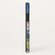 Ein Spray von Aquarellfarben in den Farbtönen Blau, Lavendel, Rosa und Violett wird durch goldfarbene Pinselstriche aus Metall und einen dunkelblauen Hintergrund untermauert. Der rechte Rand hat eine dünne Linie blauen Glitzer, um eine Touch von Launen hinzuzufügen. Es ist ein weibliches Telefongehäuse, das weich und raffiniert ist.