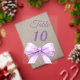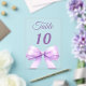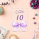 Personalize and your table numbers one by one. A clear background decorated with a large lavender colored bow.
