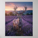 A graceful lavender deer stands peacefully in a dreamy field of purple blooms at twilight. Realistic deer anatomy blends with fragrant lavender blossoms, silvery stems, and elegant floral antlers for a serene fantasy look. Rolling flower rows, soft evening haze, distant hills, and fading sunset light create a calming countryside atmosphere. This refined design brings softness, beauty, and gentle luxury to bedrooms, wellness spaces, feminine interiors, or thoughtful gifts. Perfect for deer lovers, floral collectors, and anyone who loves peaceful botanical nature scenes.