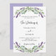 A white background decorated with lavender flowers and eucalyptus greenery. Personalize and your names and details.