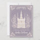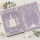 Eine hübsche Lavendel lila Brautdusche mit einer wunderschönen Märchenburg vorne und einer zauberhaften Blumengrenze auf der Rückseite mit Ihren Veranstaltungsinformationen. Lieblich für ein Rapunzel Themenevent.