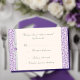 UAWG-Antwortkarte in schlichter florentiner Swirl-Muster in lila Lavendelfarben. Das gedruckte Muster hat farbige grafische Akzente auf einem weichen, cremefarbenen Hintergrund, die alle formatiert sind und im einfachen Zazzle-Texteditor mit eigenen Details bearbeitet werden können. In 6 Farben erhältlich. Passende Einladung, speichern Sie die Datumskarten, die Tischzelt-Karten und passende gemusterte Umschläge, die Sie in dieser Kollektion separat erhalten können. *Für individuell angepasste Briefumschläge können zusätzliche Wochen gewährt werden.