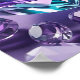 Ein großer, facettenreicher Edelstein mit tiefer lila bis aquamariner Farbgebung ist umgeben von kleineren, ähnlich farbigen Edelsteinen auf einem weichen lila Hintergrund. Die komplizierten Schnitte schaffen Reflexionen und Highlights und verstärken ihre Brillanz.
