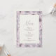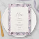 Bring timeless elegance to your wedding table with this Lavender Grey Floral Menu. Featuring soft botanical illustrations, a refined double-frame border, and classic serif calligraphy, this design adds a romantic and sophisticated touch to any reception decor. Perfect for modern, garden, or classic weddings in muted tones. Fully customizable to match your event details.