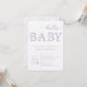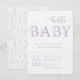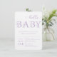 A soft lavender baby shower invitation featuring the phrase “Hello Baby” with delicate wildflower illustrations woven into the typography. Coordinating floral line art appears on both the front layout and the matching back pattern, creating a beautifully cohesive botanical design. Personalize with your event details for a sweet baby shower, sip and see, or spring celebration. Complements the Lavender Wildflower Collection and all coordinating stationery pieces.
