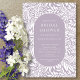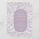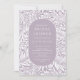 Modernes Blatt- und Blume-Muster mit einem stilvollen ovalen Rahmen, der Ihre Party-Informationen in Lavendel und Weiß umrahmt.