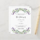 Weiß mit Lavendel-Blume und Eukalyptusgrün dekoriert. Personalisieren und Ihre Namen und Details. 1 Blatt = 1 Einladung mit Druckkante bis Kante.