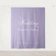 Eine einfache Hochzeitskulisse für eine Lavendelhochzeit (eine moderne Farbe). Auf einem lila Hintergrund des Lavendels werden das Wort Hochzeit und die Namen in einem eleganten kalligrafischen Skript, der Erholung in Kappen geschrieben. Der gesamte Text ist weiß und kann personalisiert sein.