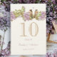 Lavender Lilac Love Bird Wedding Tischnummer Card. Lavendel und Golden Tan Tischnummer, Lavendel Information Script Lettern und Bronze-Wirbel über eine hübsche Baumzweigstelle, die sich in sanften Frühlingsblüten mit zwei romantischen Liebesvögeln bedeckt, die süß nebeneinander sitzen.Vintage Vogelhochzeiten und Besondere Anlässe