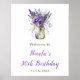 Schönes Geburtstagsgastschild mit Lavendel-Blume in einem Glaskeramikglas. Ideal zum Geburtstag. Die Wörter können geändert werden, um Ihre eigenen Angaben oder Anforderungen Anzug