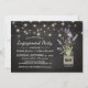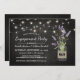 Country chic Party Einladungen mit einem rustikalen schwarzen Chalkboard Hintergrund, Saitenlichter, ein Maurerglas mit lila Lavendelwaschern-Blume, eingewickelt mit den Paarinitialen und einem Party-Template, das leicht zu personalisieren ist. Für weitere Personalisierungen klicken Sie bitte auf die Schaltfläche "Anpassen", um diese Vorlage zu ändern. Alle Textstile, Farben und Größen können nach Ihren Wünschen angepasst werden. Weitere passende Hochzeitsartikel findest du in meinem Shop www.zazzle.com/special_stationery, aber wenn du nicht findest, was du suchst, kontaktiere mich bitte.