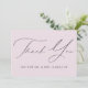 Elegante Hochzeitsdankkarte mit "Dankeschön" in einem schwarzen Kalligrafieschrift mit Ihrem Nachnamen, der unten auf einem lila Lavendel angezeigt wird. Die elegante Hochzeit Dankeschön-Karte kehrt um Ihre individuelle Danksagung und Vornamen in schwarzer Schrift anzuzeigen. Design koordiniert mit unserer Hochzeitskollektion "Moderne Elegance".