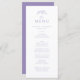 Erhöhen Sie Ihren Empfang mit unserer Lavender Monogram Wedding Menu Card. Diese Karte mit einem einfachen und raffinierten Design mit Monogramm und Wildblumen verleiht Ihrem Tisch eine Touch zeitloser Schönheit. Lassen Sie Ihre Gäste mit dieser eleganten Ergänzung durch ein unvergessliches kulinarisches Erlebnis führen.