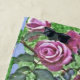 Eine dramatische Grafik, Kunstdesign, von Lavendel-rosa, farbig, Rose-in-aufblühen und voll geblasen, Bühnen von Blüte, auf einem grünen und schwarzen Busch.