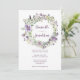 Schöner Blumenkranz in Aquarelltönen in Lavendeltönen, Pflaume, lila und cremefarben. Die Textfelder sind einfach zu personalisieren mit eigenen Informationen. Der Text ist eine Mischung aus modernen und verzierten Kalligraphie-Schriftart.