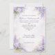 This image sets a graceful and celebratory tone for a birthday party invitation. Delicate clusters of lavender and soft purple blooms adorn each corner, accented by airy white blossoms and fresh green leaves. The pastel gradient background, with its faint vintage script, adds a romantic, timeless charm. The central blank space invites personalized text, framed by the floral elegance that suggests warmth, joy, and a touch of whimsy—perfect for honoring someone special on their birthday. The back of the card is a variation of the graphic on the front Personalize with your own information.
