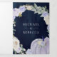 Lavender Rose Pumpkin QR Code Navy Blue Wedding Dreifach Gefaltete Einladung