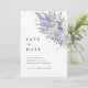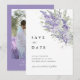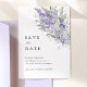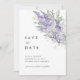 A romantic lavender watercolor floral save the date card featuring a photo back design to showcase your engagement or couple portrait.