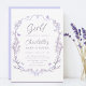 Diese Baby Dusche lädt mit einem Blumenrahmen aus Lavendel, der mit Schmetterlingen und Bändern geschmückt ist.