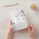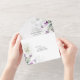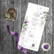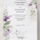 Die Blume auf der Einladung sind sanft und romantisch, in sanften Farbtönen lila mit Aquarelltextur. Sie ähneln Wildblumen oder Gartenblüten - vielleicht Lavendel, Lilie oder Anemon - gruppierten sich locker unter schlanken grünen Blätter. Die Anordnung verläuft senkrecht entlang des links Randes und fügt eine natürliche, luftige Eleganz hinzu, die das Gesamtbild mit einer Touch von Weisheit und saisonalem Charme ergänzt. Der Text ist leicht mit Ihren eigenen Informationen zu personalisieren.
