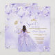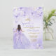 Celebrate her special day with this elegant lavender Sweet 16 invitation, featuring delicate watercolor butterflies, soft purple tones, and a beautiful quince-style gown illustration with a statement bow.