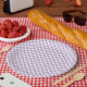 Ein einfaches Lavendel- und Weißgingham-Karton-Muster, auf diesen wunderschönen Tellern aus Papier. Wir tragen das auch in vielen anderen Farben.