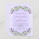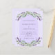Ein violetter Hintergrund mit lila Lavendel-Blume, Eukalyptusgrün und einem Bogenrahmen. Personalisieren und Ihre Namen und Details. 1 Blatt = 1 Einladung mit Druckkante bis Kante.