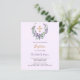 Violetter Hintergrund. Ein Blumenkranz aus Lavendel-Blume, eine Aquarellpflanze aus Eukalyptus und ein goldenes Kreuz. Personalisieren und fügen Sie einen Namen und Details. 1 Blatt = 1 Einladung mit Druckkante bis Kante.