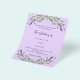 Bitte beachten Sie, dass diese Einladung auf Flyer Papier und sehr dünn ist. Umschläge sind nicht enthalten. Für dickere Einladungen (gleiche Gestaltung) besuchen Sie bitte unseren Shop. Violett mit Lavendel-Blume und Eukalyptusgrün. Personalisieren und Ihre Namen und Details. Zurück: Fügen Sie Ihre Weburl zu Ihrer Hochzeitswebsite für UAWG und weitere Details hinzu.