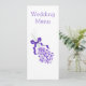Hochzeitsessen Menü Lavendel Design. Passen Sie dieses lavenderfarbene Menü mit Ihren Hochzeitsdetails an. Wenn Sie Hilfe bei der Anpassung benötigen, kontaktieren Sie uns über den Link auf dieser Seite. Personalisiertes Hochzeitsmenü im Lavendel-Design