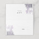 Elegante Hochzeitsfeier mit Lavendel. Im Vordergrund steht Platz für den Namen und die Tischnummer des Gastes, im hinteren befinden sich die Initialen und das Hochzeitstag. Personalisieren Sie Ihre Hochzeitsdetails.