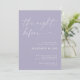Laden Sie Ihre Gäste am Abend vor der Einladung zu einem Proberestück mit diesem Minimalisten ein. Dieses Hochzeitsessen-Dinner-Angebot passt perfekt zu jeder lavender Hochzeitsfeier oder zum lila lila Probe-Dinner!
