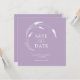 Announce your engagement with these wedding save the date templates. This design features lavender line art in with a mix of classic and script typography in white over an purple background. All the colors can be customized to suite your wedding color scheme. Use the template fields to personalize with your name and wedding date. Order printed cards or a digital save the date download. To see the matching wedding stationery suite visit www.zazzle.com/dotellabelle