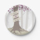Teller mit einer Abbildung eines Baumes mit in Banner ummanteltem Kofferraum. Blätter sind Lavendel. Personalisieren mit Namen. Suchen Sie nach passenden Hochzeitseinladungen und mehr in Jill's Paperie.