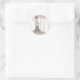 Ein Hochzeitsaufkleber im Freien, der eine Abbildung eines Baumes im Wald enthält. Der Baum hat Lavendel-Blätter, sichtbare Wurzeln und einen Kofferraum, der mit Bannern umhüllt ist, die mit den Namen von Braut & Bräutigam angepasst werden können.