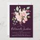 Eine wunderschöne Brautjungfrau-Einladung zum Mittagessen mit einer großen Aquarellblüte aus rosa Rosen und Grün, beendet mit Imitaten rosa Glitzer, auf einem raffinierten Auberginen-Hintergrund. Die Rückseite ist in massivem hellrosa. Moderner kalligraphischer Schriftart gepaart mit sans serif Schriftart verleiht dieser Einladung ein modernes Aussehen.