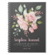 Eine personalisierte Christliche Schriftzeitschrift mit einer blumengeschmückten Aquarell-Anordnung aus rosa Rosen und Grün, mit Imitat-Rosa-Glitzer, auf dunkelgrauem Hintergrund, die Phrase "Scripture Journal" in rosa Pinsel mit Schriftart, mit dem Bibelvers "Die Grashalterung, die Blume verblasst, aber das Wort unseres Gottes steht für immer" Isaiah 4 4. NKJV darunter. Personalisiert durch Hinzufügen eines Namens.