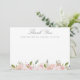 Eine hübsche Hochzeit danke Ihnen eine Flachkarte, um eine Notiz zu schreiben, um Ihre Hochzeitsgäste zu schätzen. Dieses Design zeichnet sich durch einen unteren Rand von rosa Aquarellfarben Rose und grüne Blätter mit einer Touch von Imitaten Glitzer. "Danke" ist in einem grauen Skript-Schriftart. Personalisieren Sie mit "aus dem neuen mr. und mrs.) in grau Serif Schriftart.