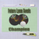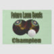 Bilder sind zwei Rasenschüsseln und Jack mit den Worten Future Rasen Schüsseln Champion.