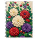 This vibrant floral illustration features a lush garden of layered blossoms crafted in a paper-cut style. Cream, red, and purple flowers bloom among rich green leaves, creating depth and texture with a handcrafted, dimensional look. The symmetrical composition and soft neutral background give the artwork a warm, elegant feel, blending modern decorative design with a folk-art-inspired aesthetic. Perfect for nature lovers, artists, and stationery enthusiasts, this notebook design brings a cheerful, calming garden atmosphere to everyday writing, journaling, or note-taking.