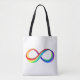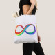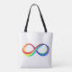 Helles Symbol der Unendlichkeit aus Plastikschichten rot, gelb, grün, türkis, blau und lila gesättigt Farben auf weißem Hintergrund.