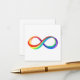 Helles Symbol der Unendlichkeit aus Plastikschichten rot, gelb, grün, türkis, blau und lila gesättigt Farben auf weißem Hintergrund.