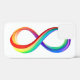 Helles Symbol der Unendlichkeit aus Plastikschichten rot, gelb, grün, türkis, blau und lila gesättigt Farben auf weißem Hintergrund.