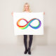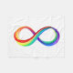 Helles Symbol der Unendlichkeit aus Plastikschichten rot, gelb, grün, türkis, blau und lila gesättigt Farben auf weißem Hintergrund.