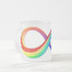 Helles Symbol der Unendlichkeit aus Plastikschichten rot, gelb, grün, türkis, blau und lila gesättigt Farben auf weißem Hintergrund.