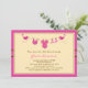 Niedliche und moderne Babyduscheneinladung groß für Mama-zusein, das ein Mädchen erwartet. Kennzeichnet eine Kleidungslinie, die durch zwei kleine Vögel mit einem Körper-Anzug, einem Schellfisch und einem Paar Socken gehalten wird. Süßes und spielerisches Entwurfsideal für eine schicke Mamma. Addieren Sie Ihre eigene Benennung.