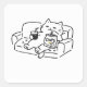 A simple and funny doodle-style drawing of a chubby cat lounging on a sofa while eating snacks. The cat is holding a bag of chips in one paw and a drink with a straw in the other, looking relaxed and carefree while surrounded by crumbs. The minimal, cartoon-like design adds to the humor of the scene.