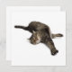 Graue Katze, die auf dem Boden liegt und sich auf einem weißen Hintergrund erstreckt
