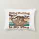 A soft rectangular pillow featuring a relaxed retro sloth and a lazy humor quote.