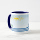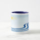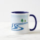 Schwimmen Sie entlang eines faulen Flusses mit der hellen, gelben Sonne, die von einem schönen blauen Himmel und grünen immergrünen Bäumen am Ufer abstrahlt. Diese Tasse zeichnet sich durch ein einfaches abstraktes Design aus, das Ihnen zum Träumen verhilft.